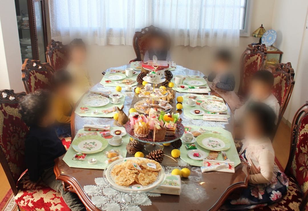 This month too the little princes and little princesses were dressed up. They enjoyed the orange flavored ice tea which was made of Ceylon tea and the mystic Chinese tea in which flower blooms, and learned manner in Alice in Wonderland settings.