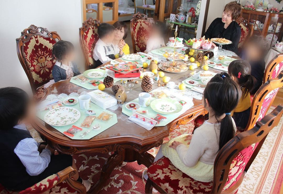 Having the rose of angel in the center of the table, the tea and manner lesson of little princes and little princesses was held.