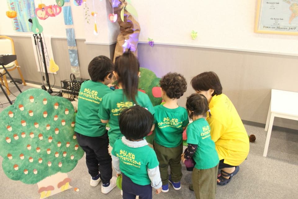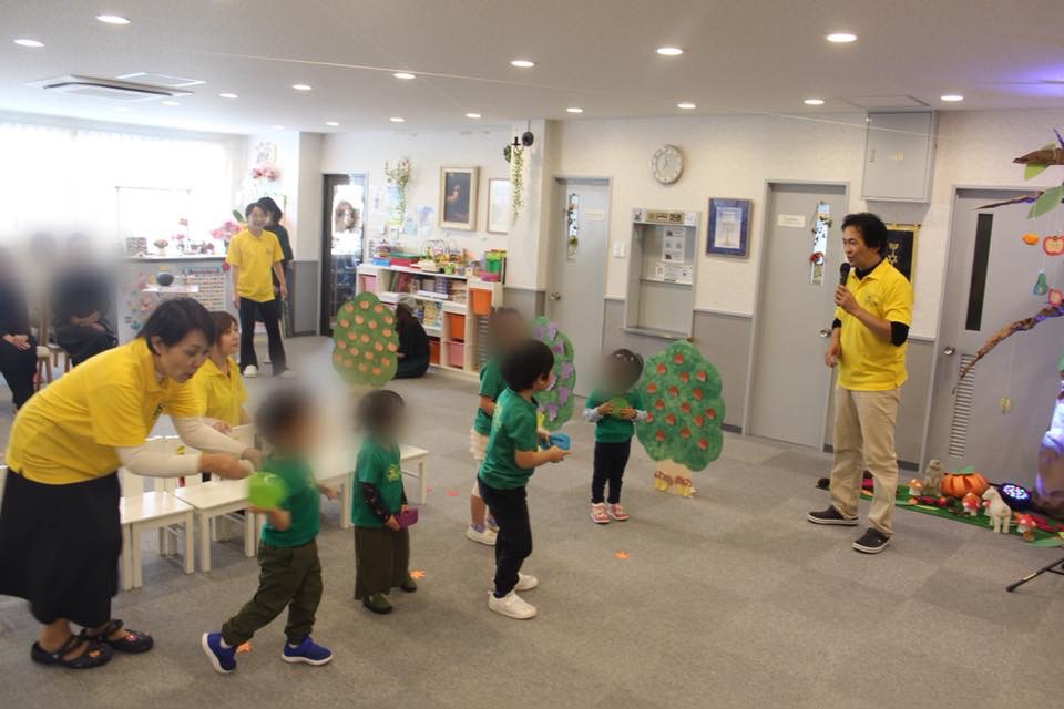 実際に手で触って当てるゲームや、色々な木から沢山の秋の果物を