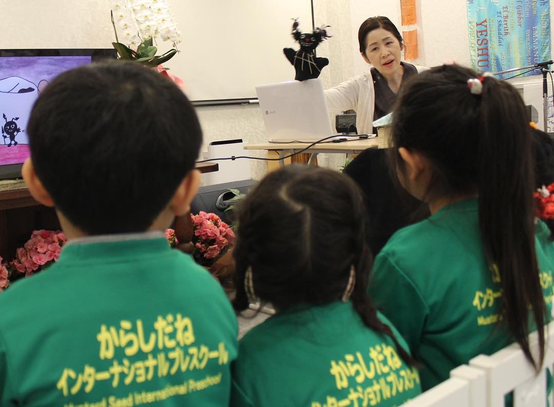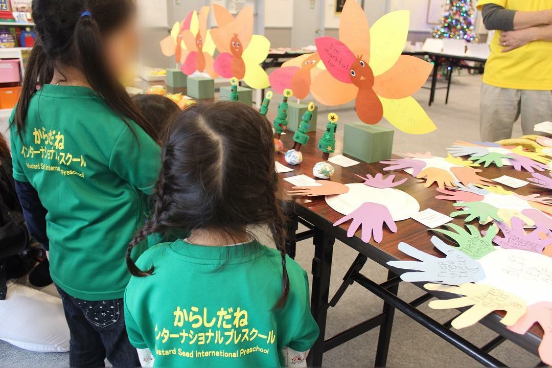 からしだね学園全体のキッズクリスマスパーティーが行なわれ、その中で、からしだね学園の中高生による完全オリジナルストーリーのミュージカル劇が行なわれました。 プレスクール生も可愛らしい羊さんたちを演じました。