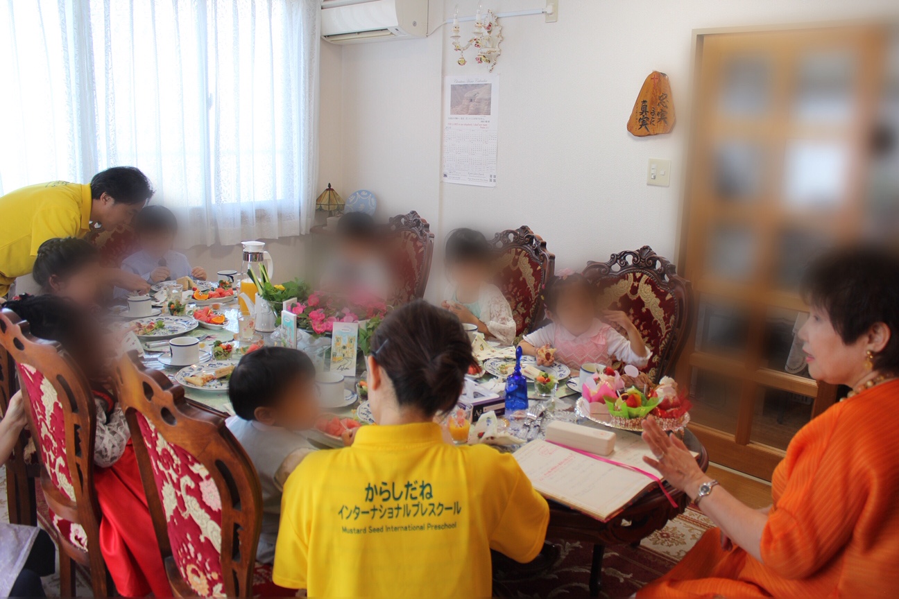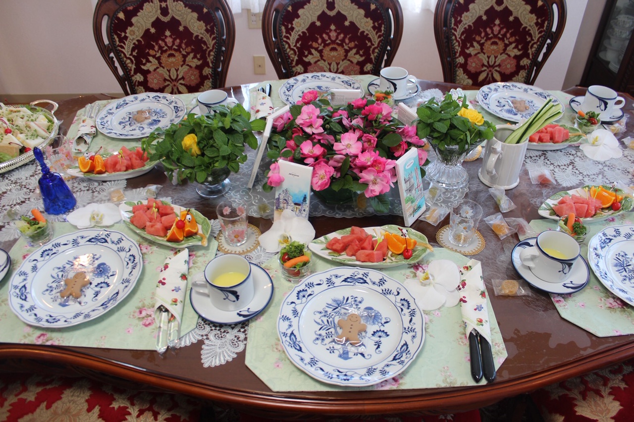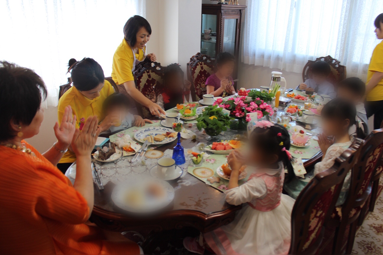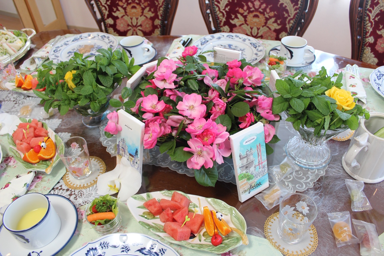 天使のバラをテーブルの主役に迎え、リトルプリンス&リトルプリンセスのティー&マナーレッスンが行なわれました。👔 👗