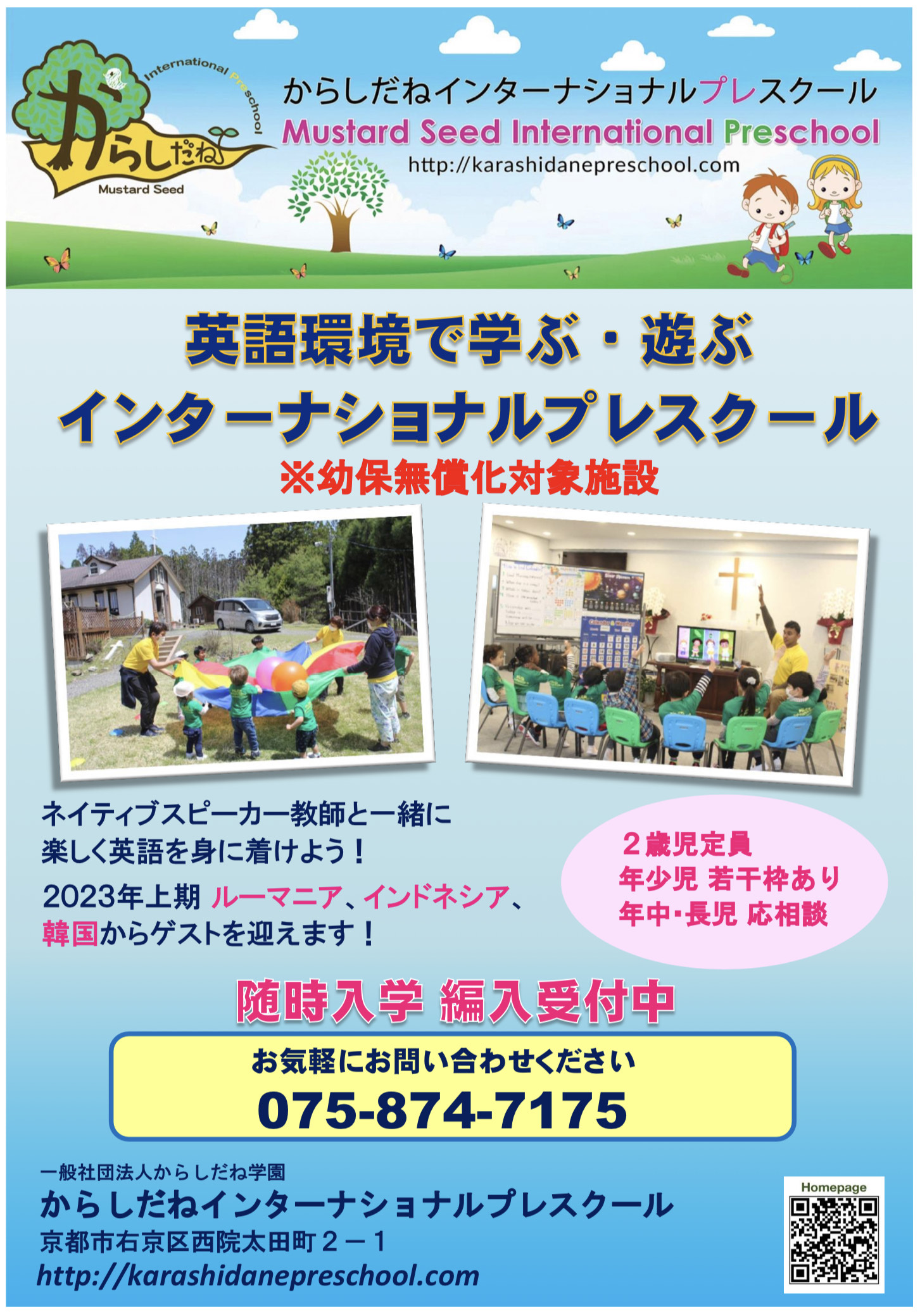 京都市にある英語の幼稚園 インターナショナルスクール